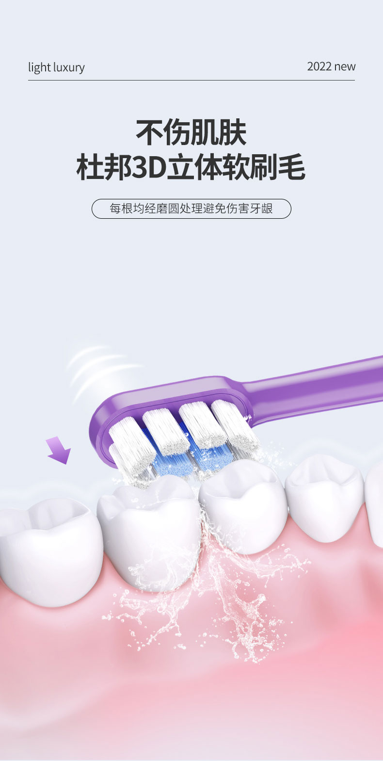 3、采用杜邦3D立體軟刷毛,避免傷害牙齦
