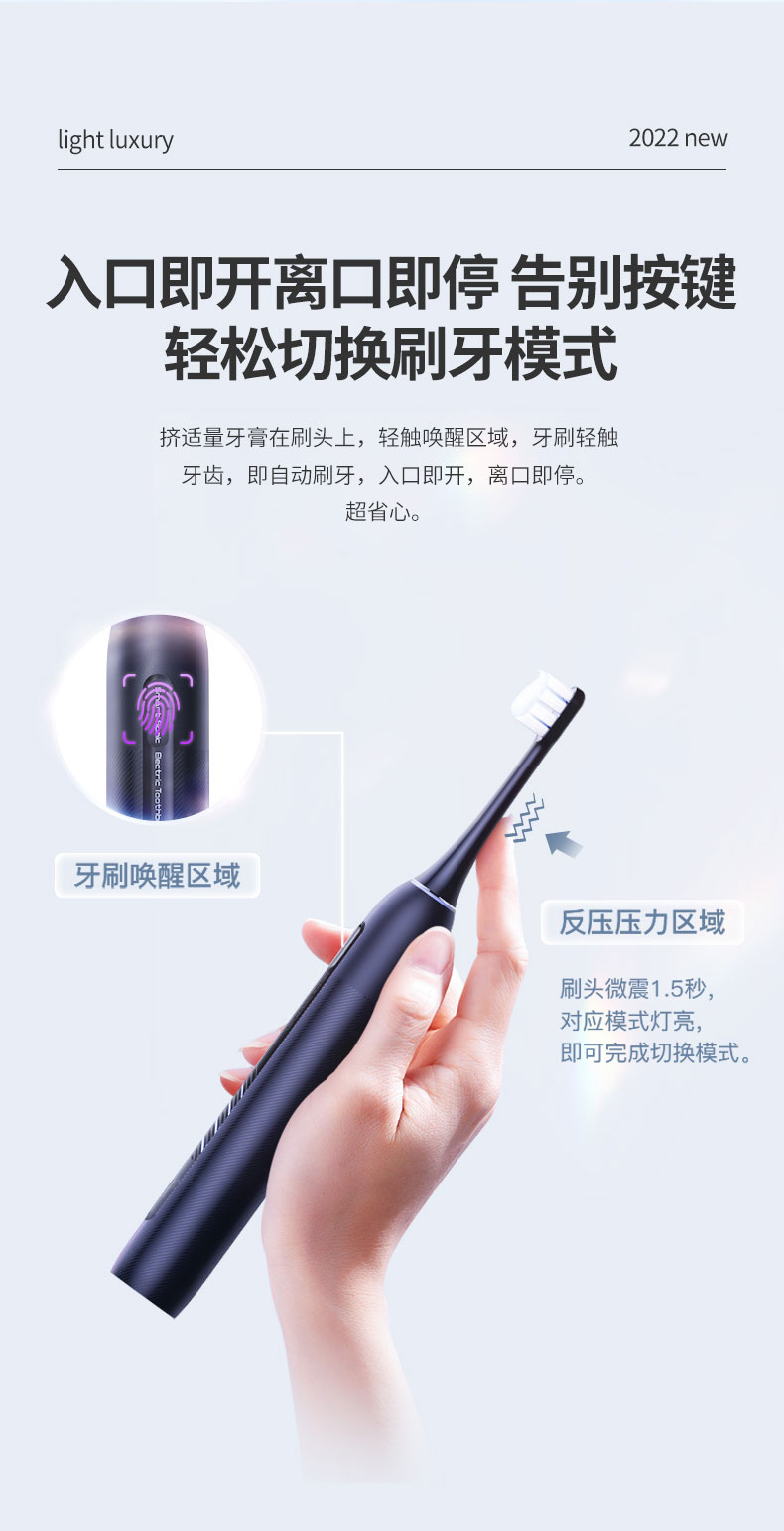 1、入口即開離口即停,告別按鍵,輕松切換刷牙模式